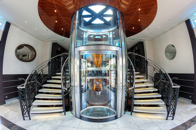 The inline gear system is an improvement on the basic chain drive concept which places the motor assembly at the top of the shaft – instead of on top of the cab like a standard chain drive. This allows for less headroom on the shaft, reducing construction costs, and also provides faster access to emergency controls outside the car, increasing safety. Inline gear systems are also somewhat more energy-efficient than standard chain drives.
